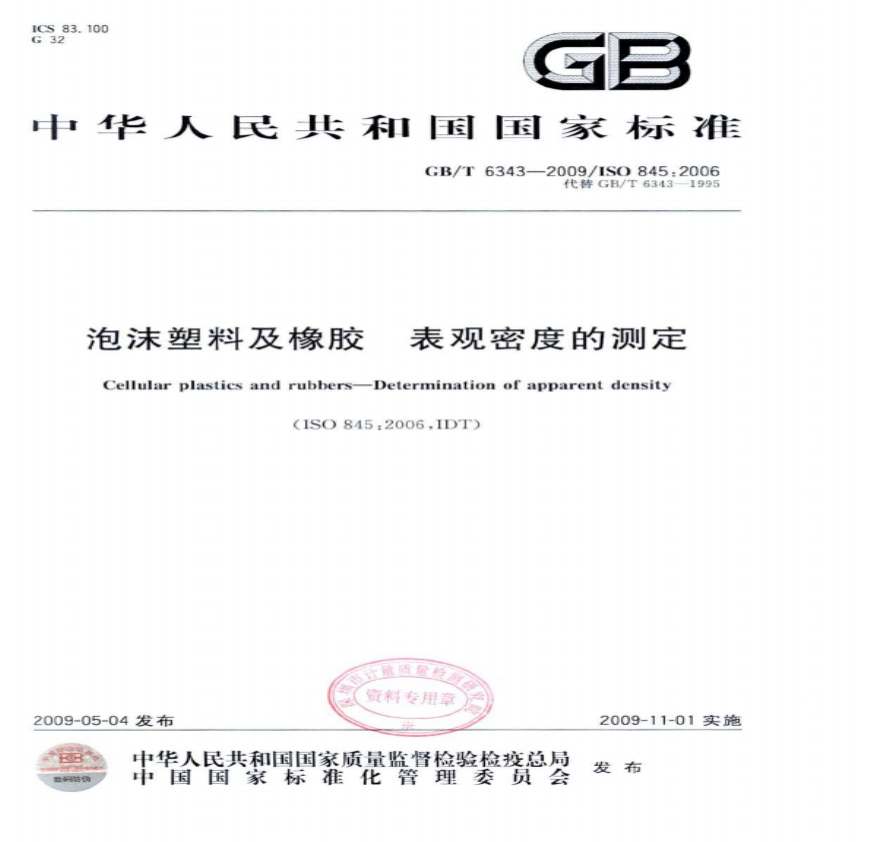 > GBT6343-2009 泡沫塑料及橡胶 表观密度的测定