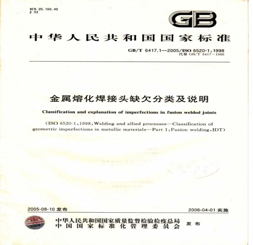 > GB T 6417.1-2005 金属熔化焊接头缺欠分类及说明