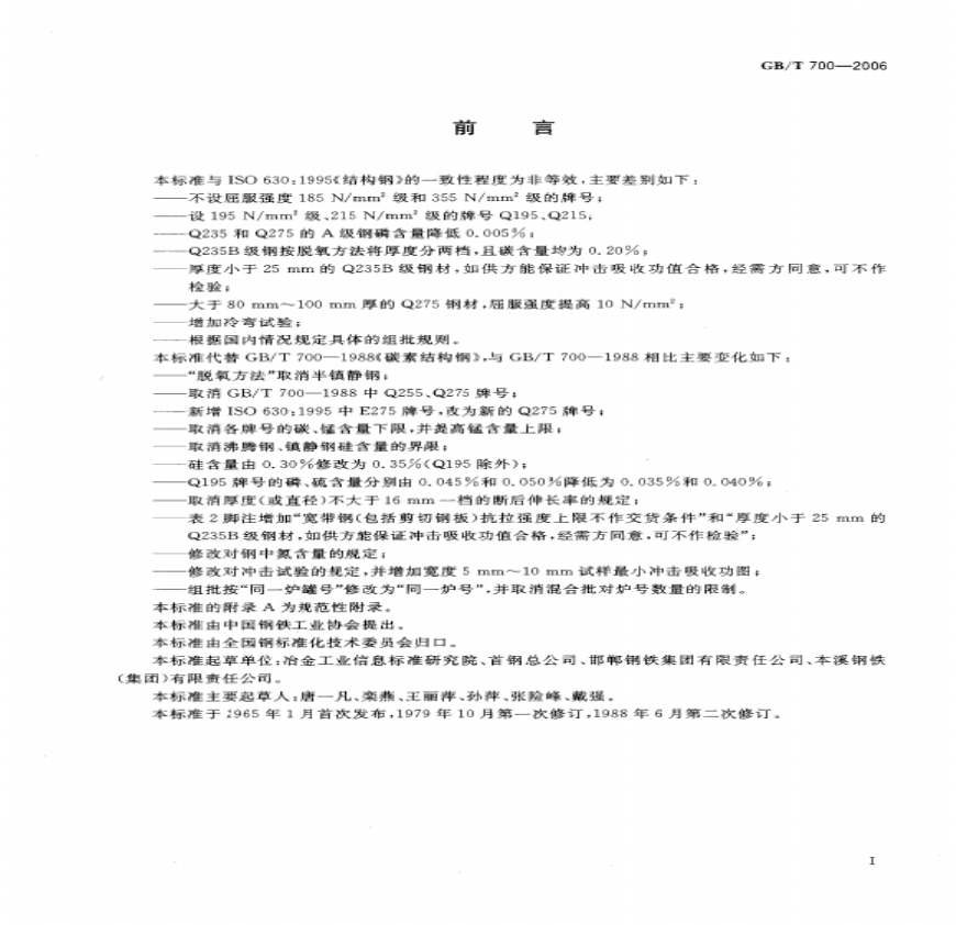 > GB T 700-2006 碳素结构钢