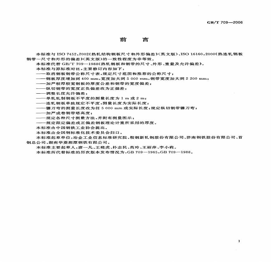 > GB-T_709-2006_热轧钢板和钢带的尺寸、外形、重量及允许偏差