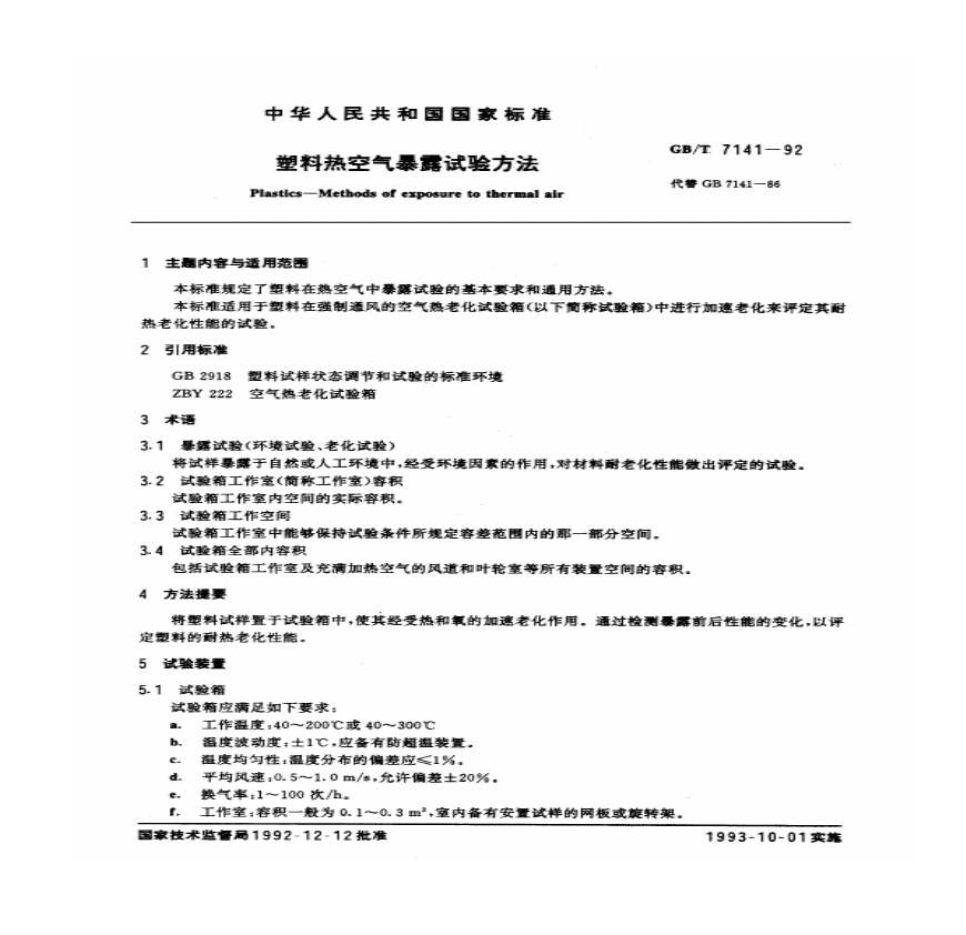 GB-T 7141-1992 塑料热空气暴露试验方法资料下载,喜欢的朋友可以下载收藏!