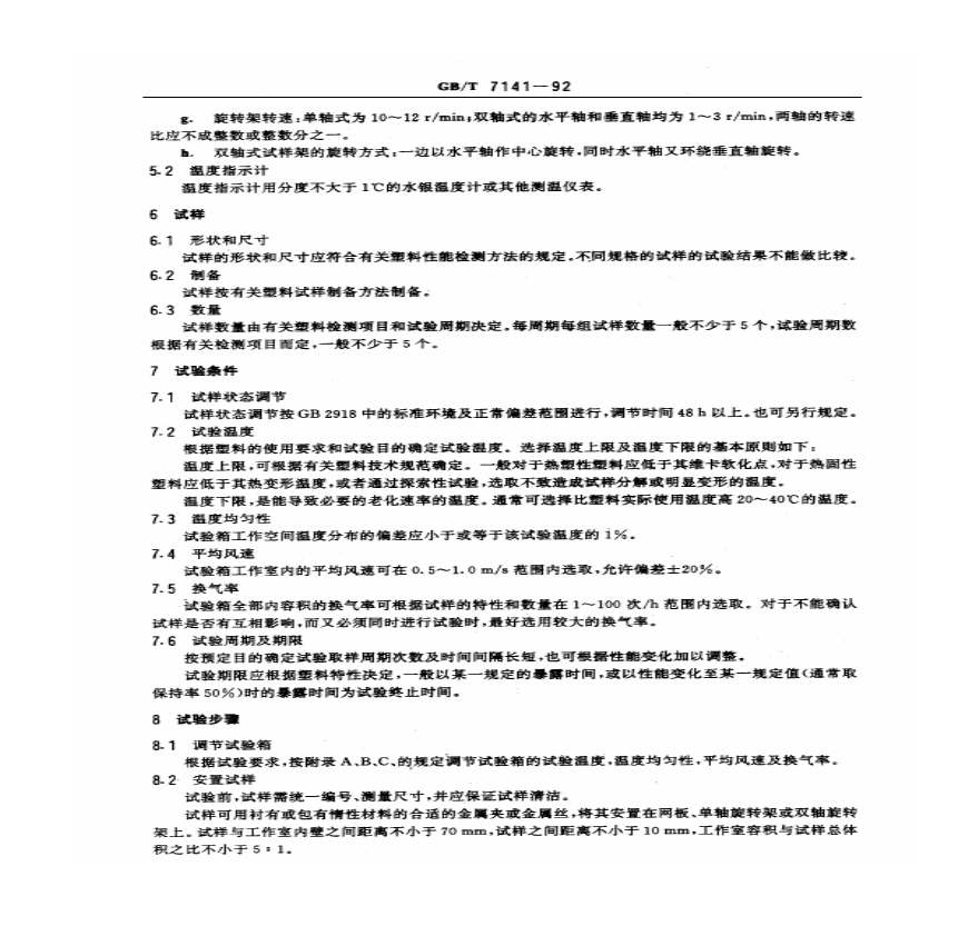 > GB-T 7141-1992 塑料热空气暴露试验方法