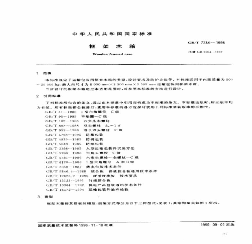 GBT 7284-1998 框架木箱资料下载,喜欢的朋友可以下载收藏!