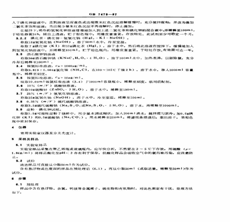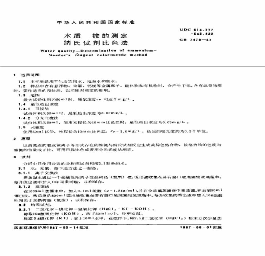 > GB-T7479-1987水质 铵的测定 纳氏试剂比色法