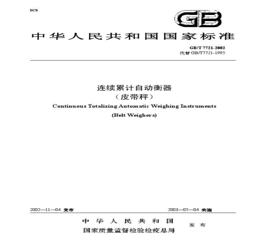 > GB_T7721-2002电子皮带秤