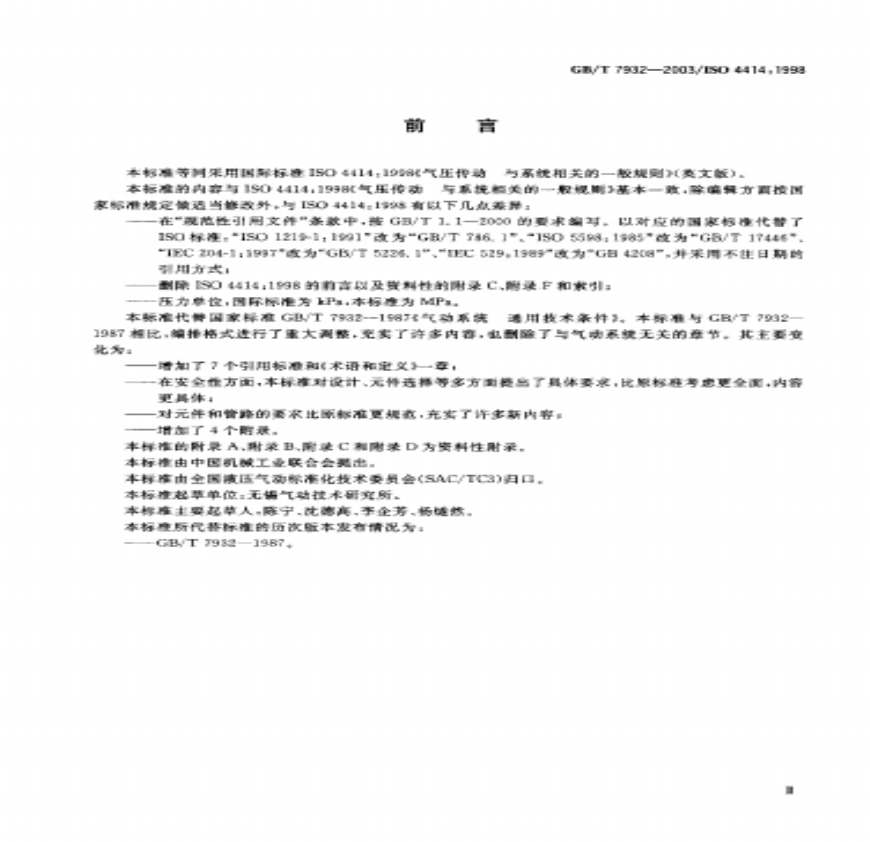 气动系统通用技术条件 , 前言本标准等同采用国际标准SO,气压传动与系统相关的一般规则以英文版。
