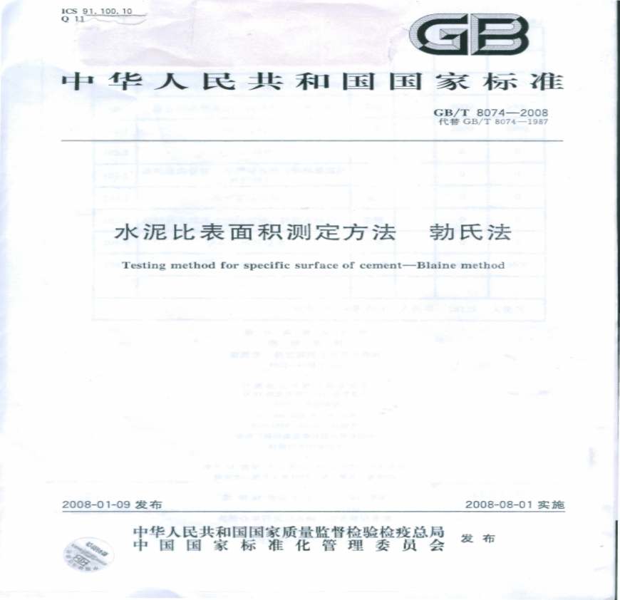 GB.T8074-2008水泥比表面积测定方法资料下载,喜欢的朋友可以下载收藏!