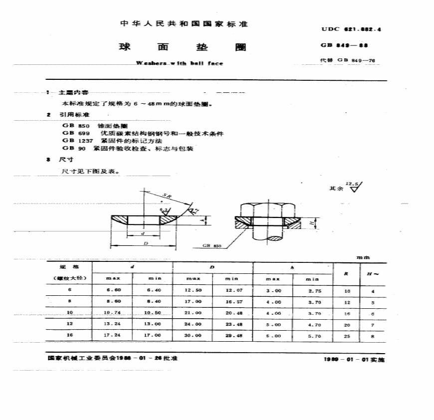 球面垫圈 国内标准
