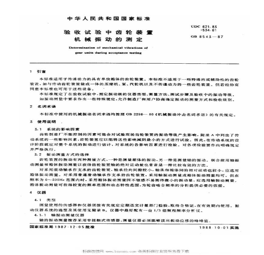 > GBT 8543-1987 验收试验中齿轮装置 机械振动的测定