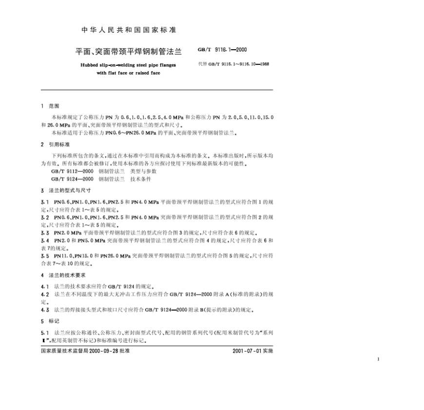 > GBT 9116[1].1-2000平面、突面带颈平焊钢制管法兰