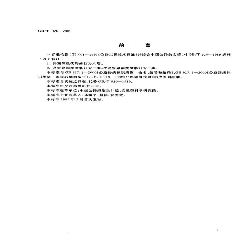 国家标准(GB)本标准规定了公路路面等级与面层类型代码,适用于公路路面等级与面层类型信息的处理与交换。