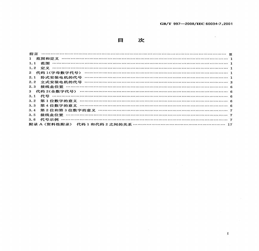 两种代号规定如下:代号(见第章):字母数字代号适用于具有端盖式轴承和一个轴伸的电机。