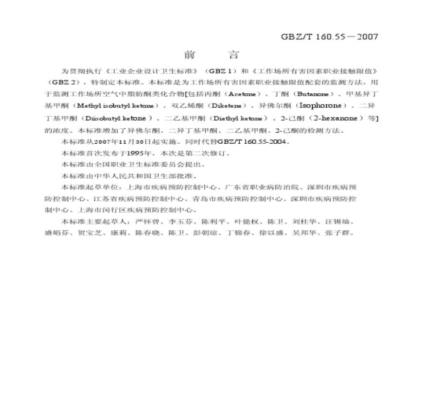 GBZ-T 160.55-2007 工作场所空气有毒物质测定 脂肪族酮类化合物.pdf 免费下载