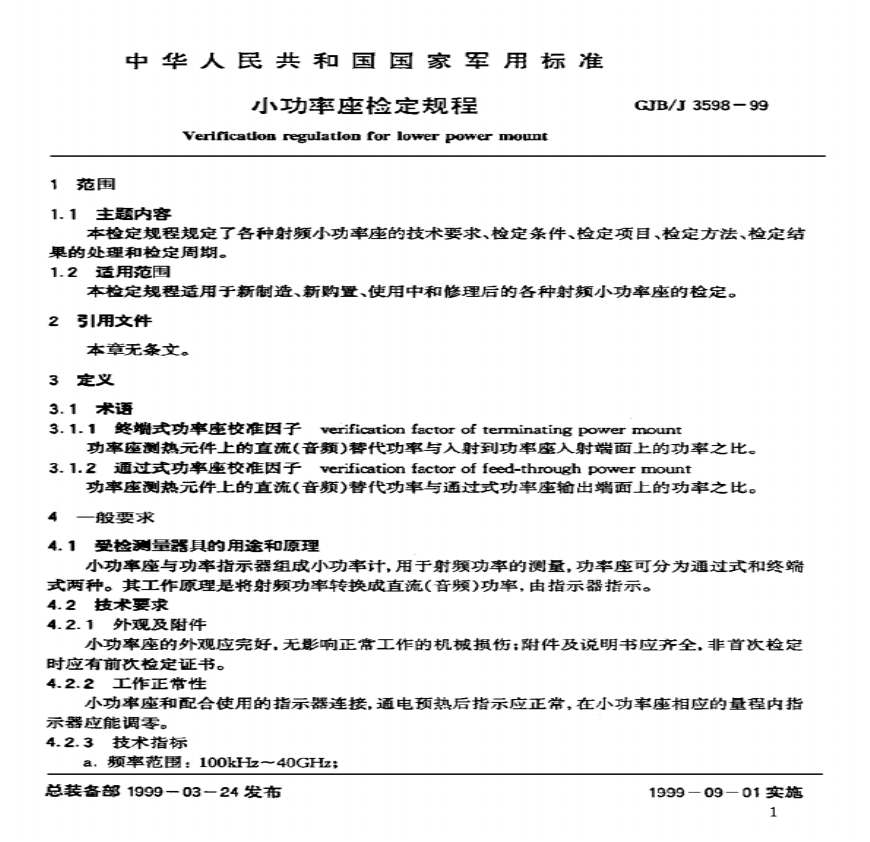 GJB_J3598-1999 小功率座检定规程.pdf 免费下载
