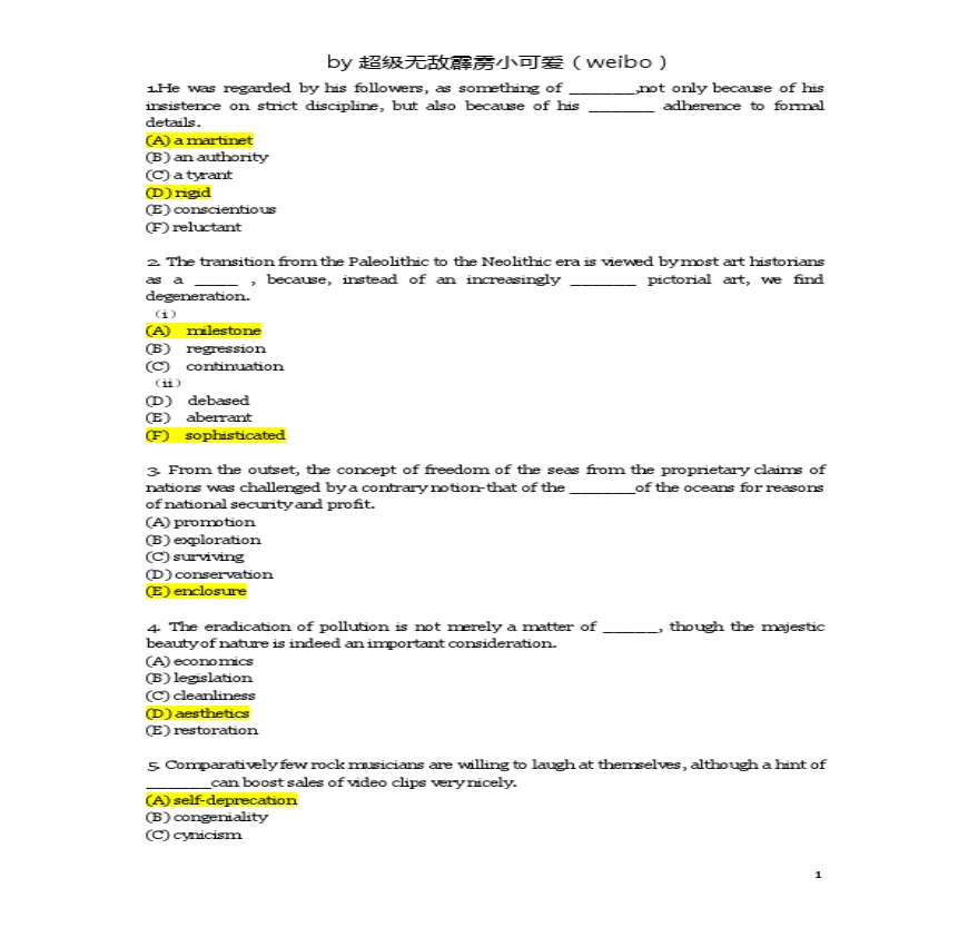GRE讲义补充习题及答案资料下载,喜欢的朋友可以下载收藏!