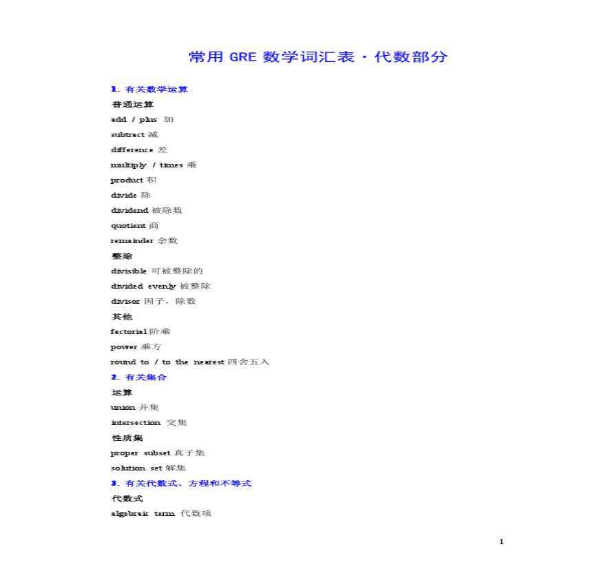 GRE数学必备词汇资料下载,喜欢的朋友可以下载收藏!