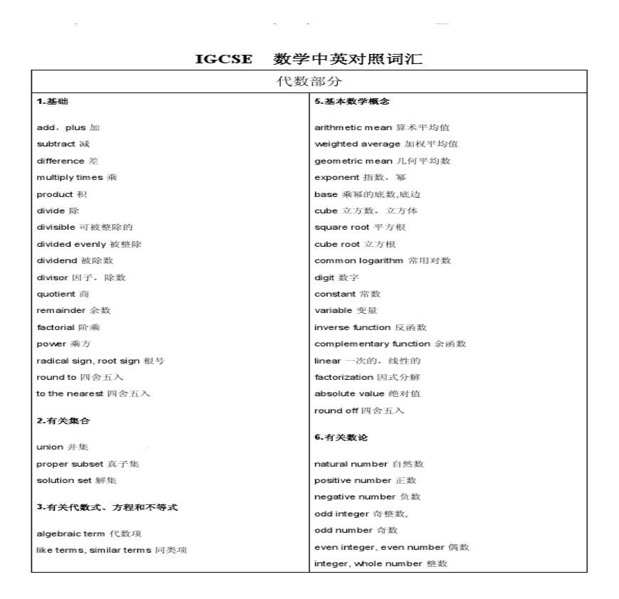 IGCSE数学中英词汇资料下载,喜欢的朋友可以下载收藏!
