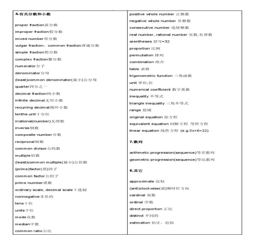 IGCSE数学中英词汇.pdf 免费下载