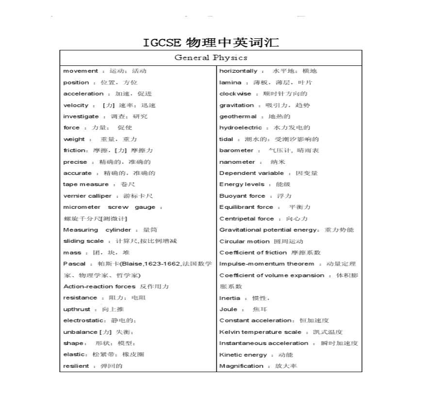 IGCSE物理中英词汇资料下载,喜欢的朋友可以下载收藏!