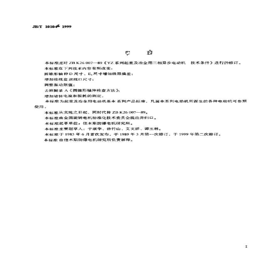 JB 10104-1999-T YZ系列起重及冶金用三相异步电动机 技术条件.pdf 免费下载