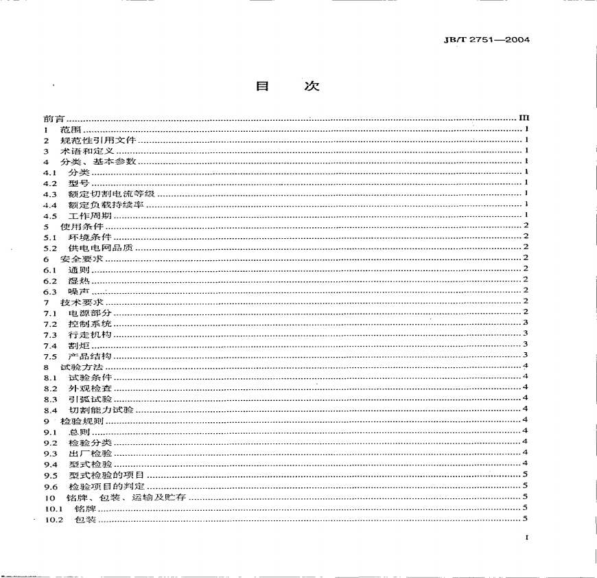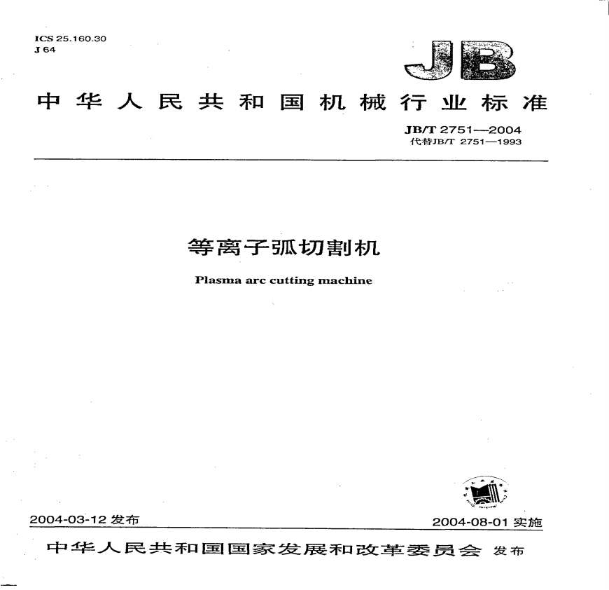JB2751-2004 等离子弧切割机.pdf 免费下载