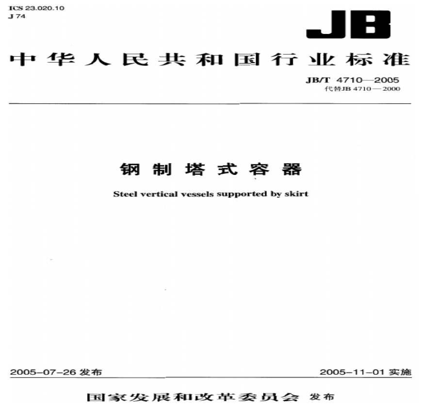 JB4710-2005T 钢制塔式容器资料下载,喜欢的朋友可以下载收藏!