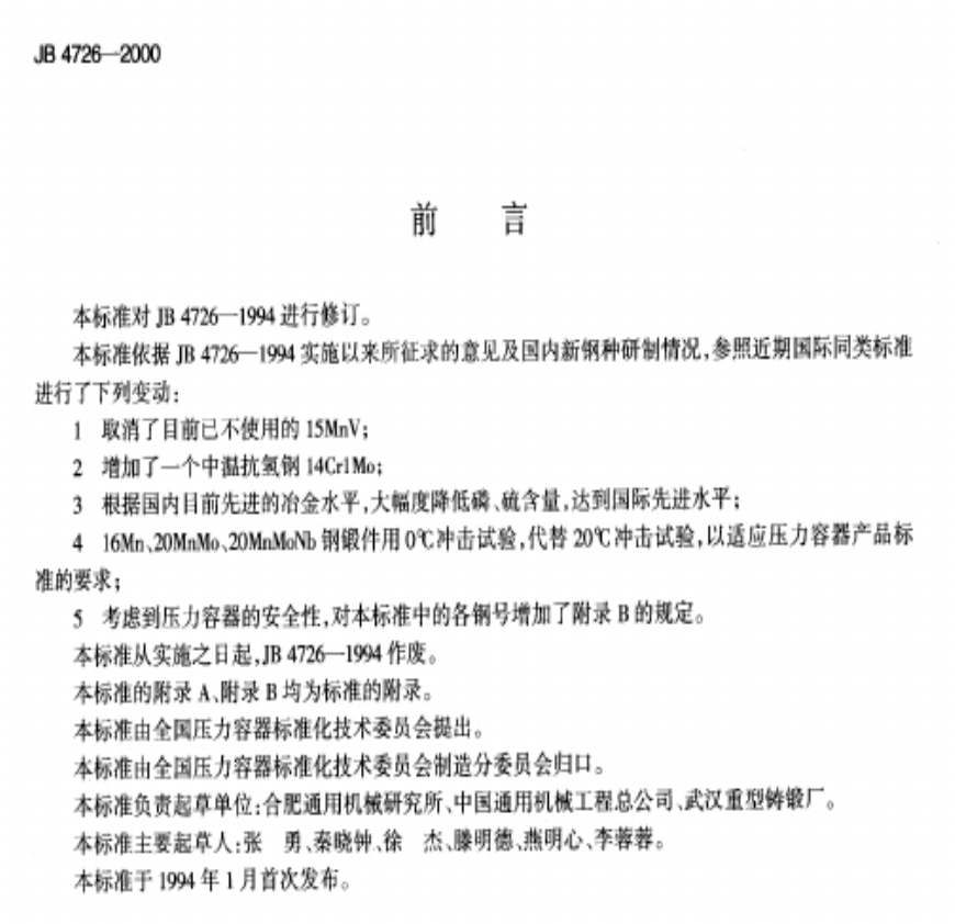JB4726-2000压力容器用碳钢和低合金钢锻件