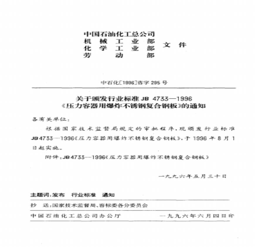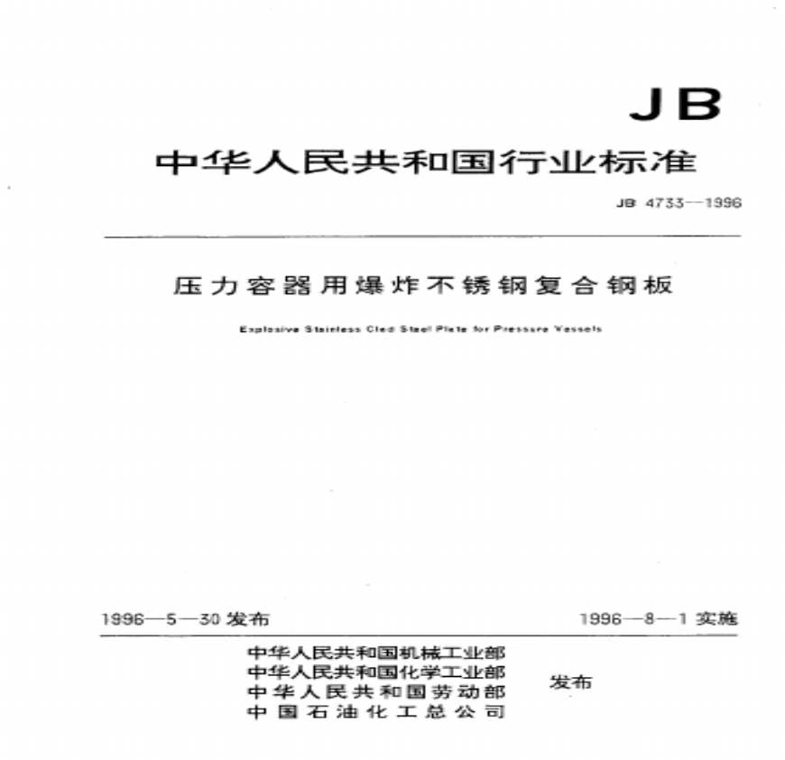 > JB4733-1996 压力容器用爆炸不锈钢复合钢板