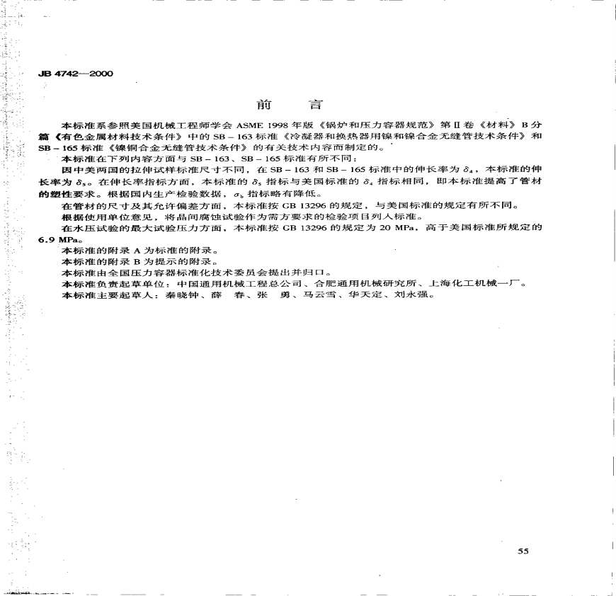 > JB4742-2000 压力容器用镍铜合金无缝管
