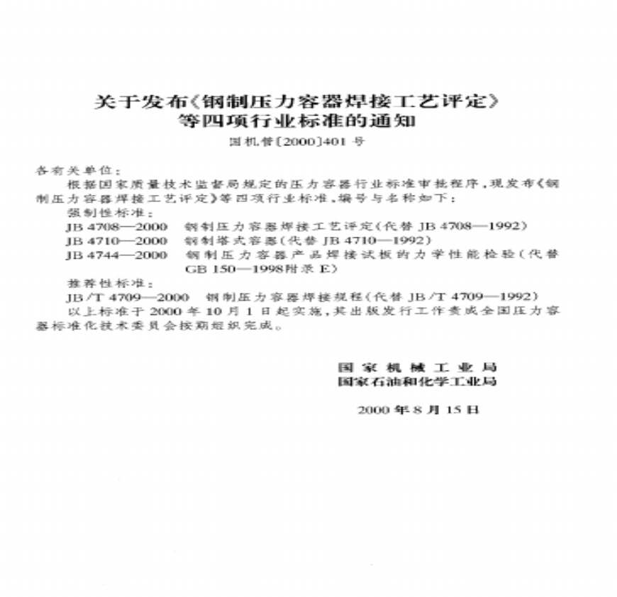 JB 4744-2000 钢制压力容器产品焊接试板的力学性能检验资料下载,喜欢的朋友可以下载收藏!
