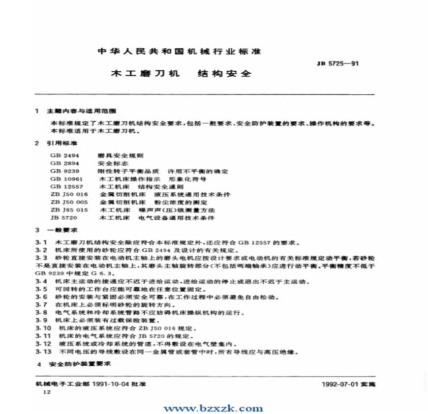 > JB5725-1991 木工磨刀机 结构安全