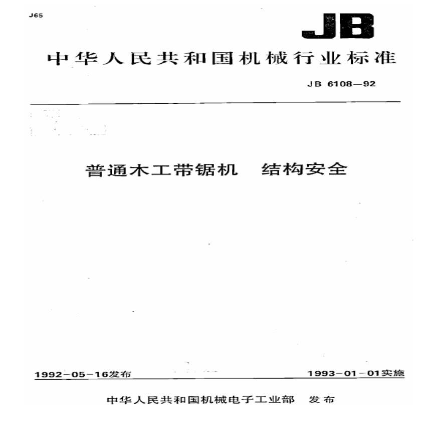 JB6108-1992 普通木工带锯机 结构安全.pdf 免费下载