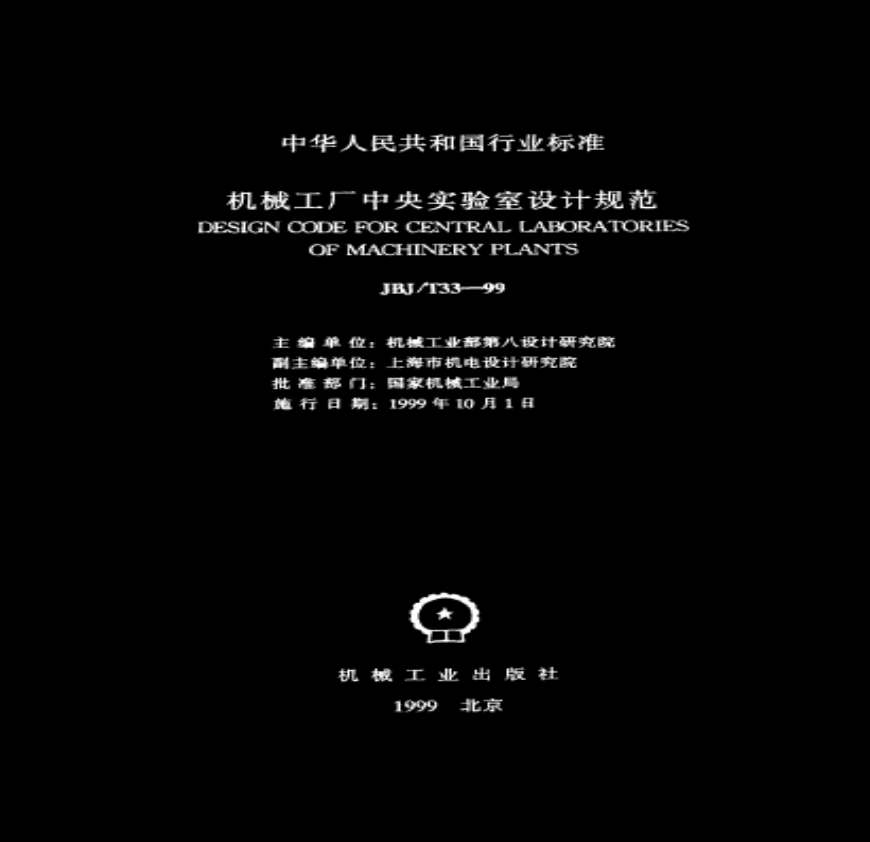 JBJT 33-1999 机械工厂中央实验室设计规范.pdf 免费下载
