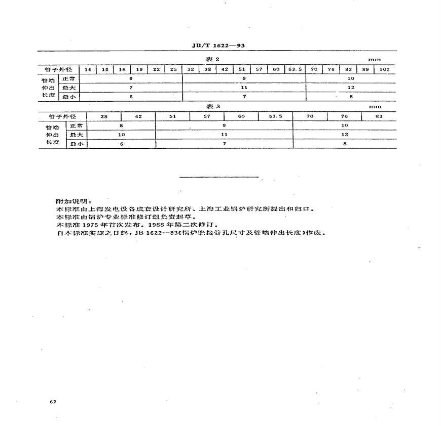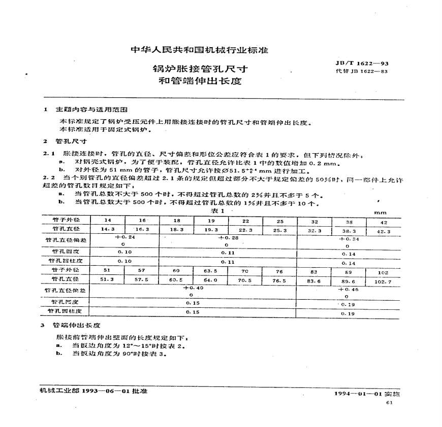 > JBT 1622-1993 锅炉胀接管孔尺寸和管端伸出长度
