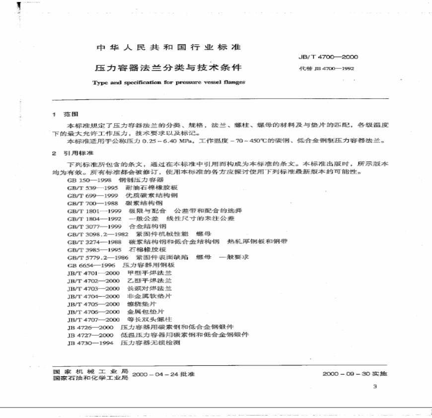 > JB/T4700~4707-2000(压力容器法兰)