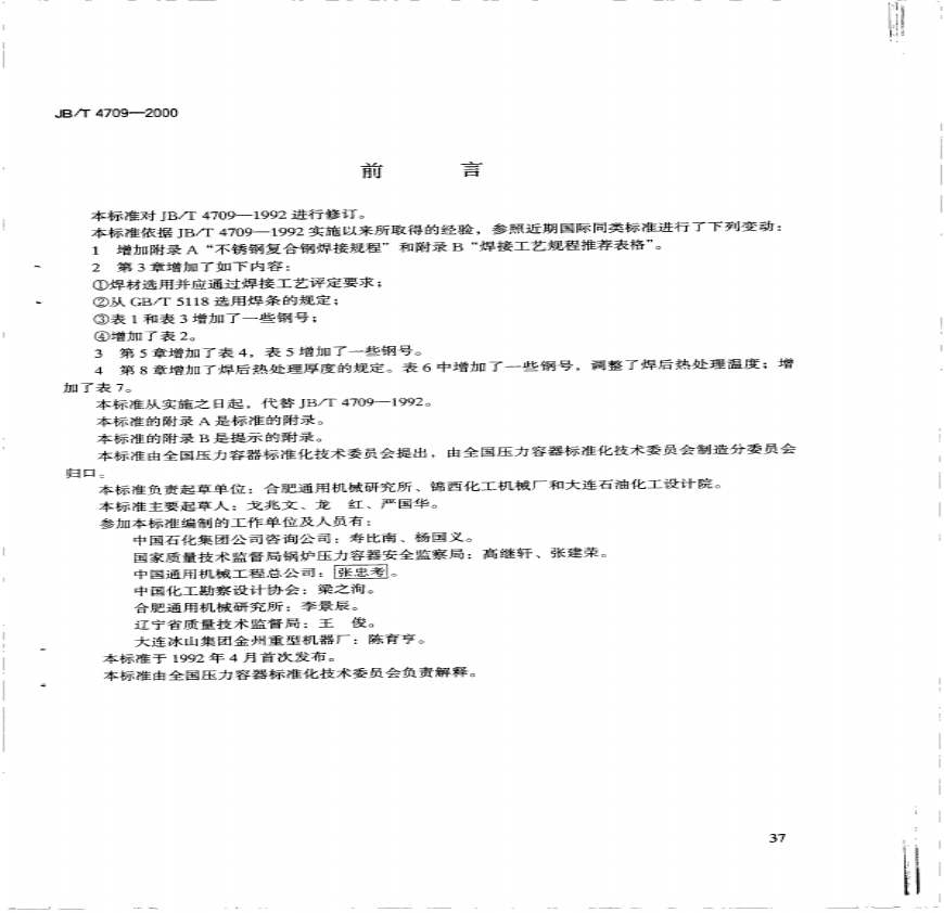 > JBT 4709-2000(30)钢制压力容器焊接规程