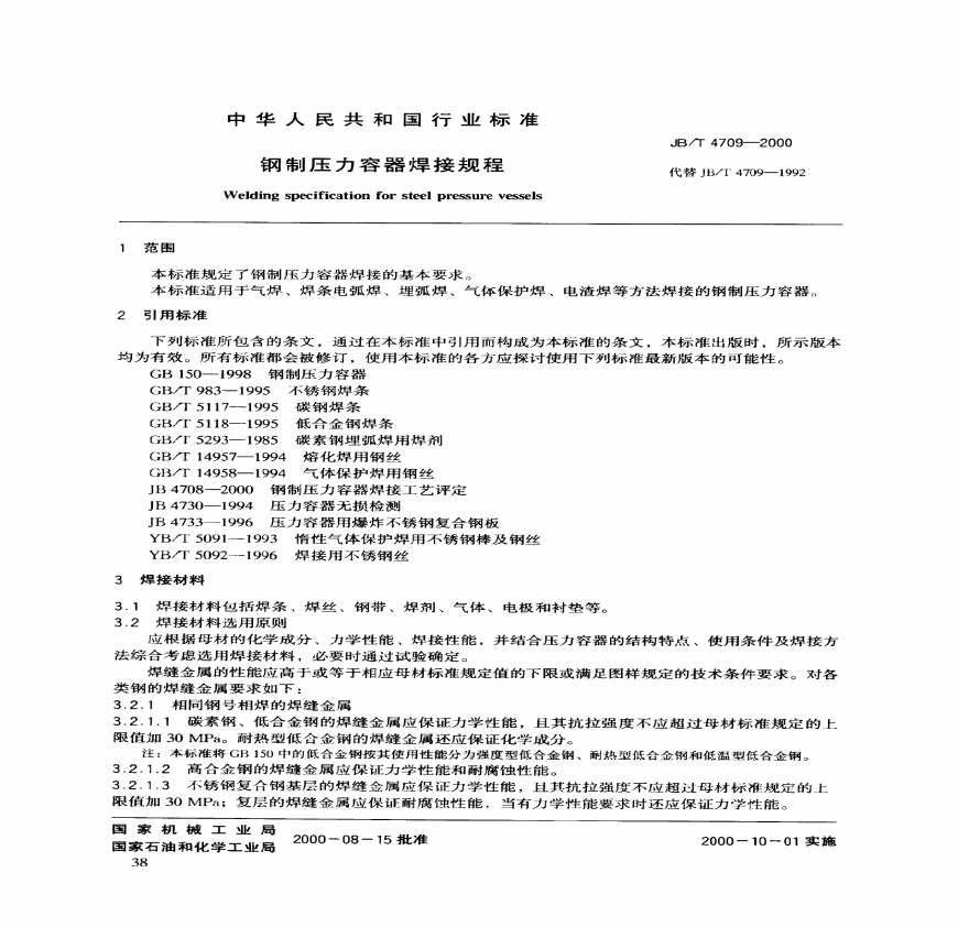 > JB-T-4709-2000《钢制压力容器焊接规程》