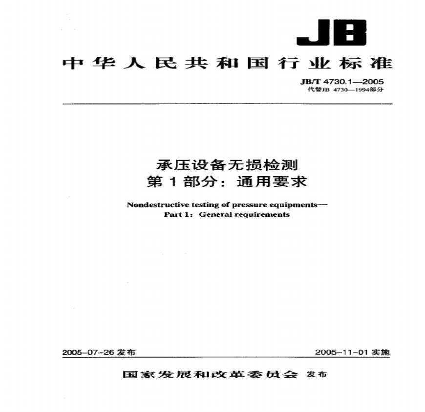 JBT4730.1-2005承压设备无损检测 第1部分:通用要求.pdf 免费下载
