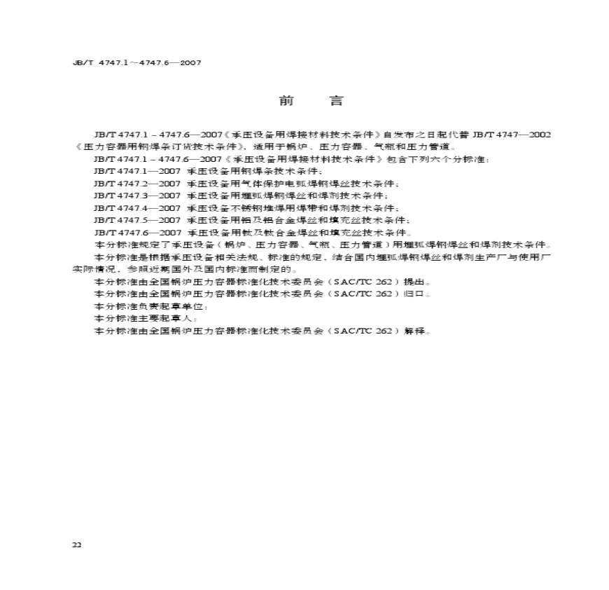 JBT 4747-2007 承压设备用埋弧焊钢焊丝和焊剂技术条件资料下载,喜欢的朋友可以下载收藏!