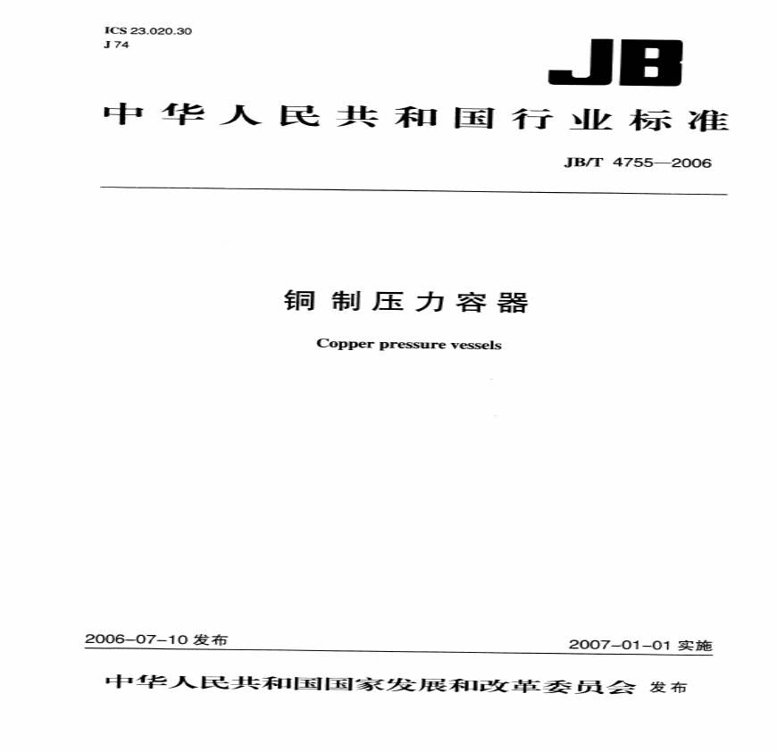 > JBT4755-2006铜制压力容器