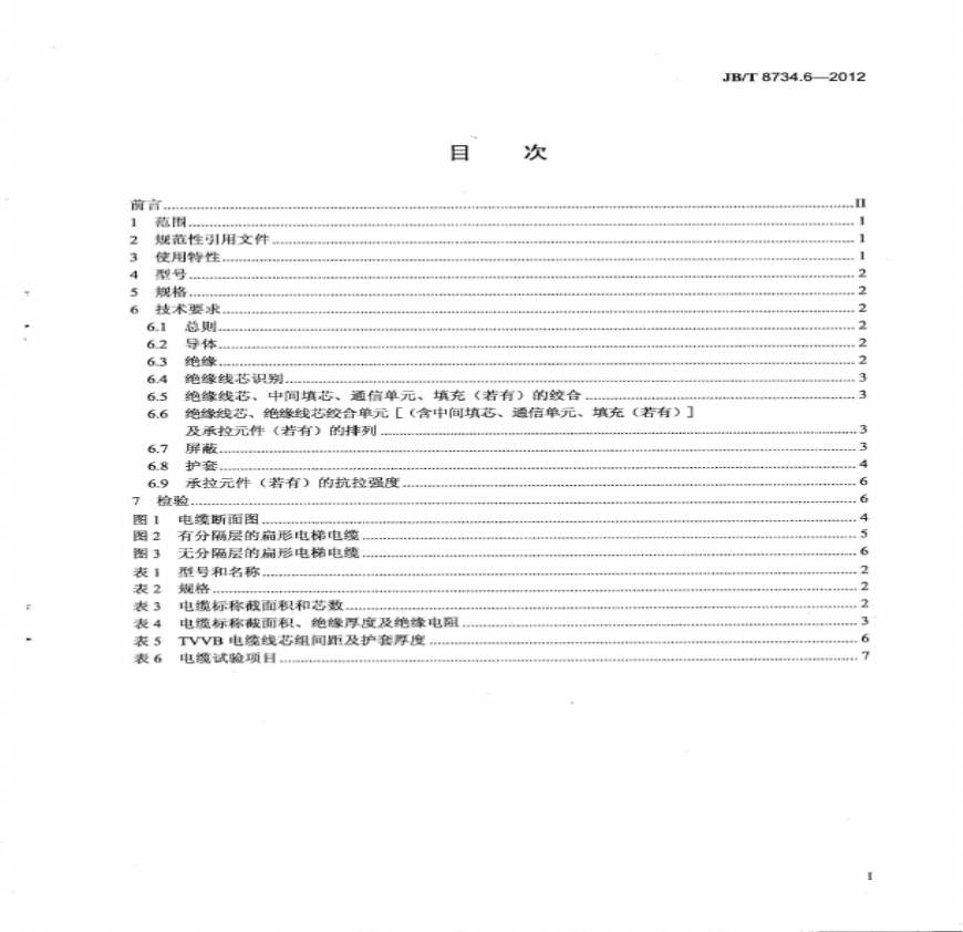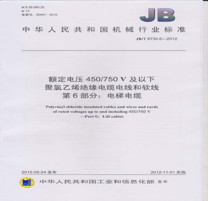 JB-T 8734.6-2012 额定电压450-750V及以下聚氯乙烯绝缘电缆电线和软线 第6部分:电梯资料下载,喜欢的朋友可以下载收藏!
