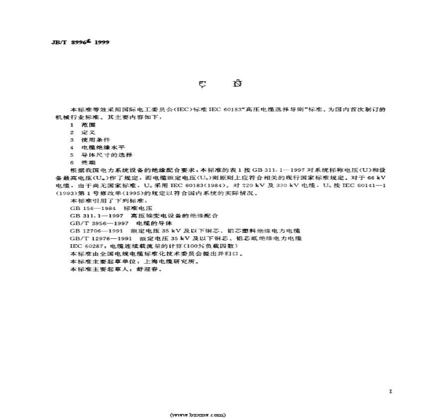 JB-T 8996-1999 高压电缆选择导则资料下载,喜欢的朋友可以下载收藏!