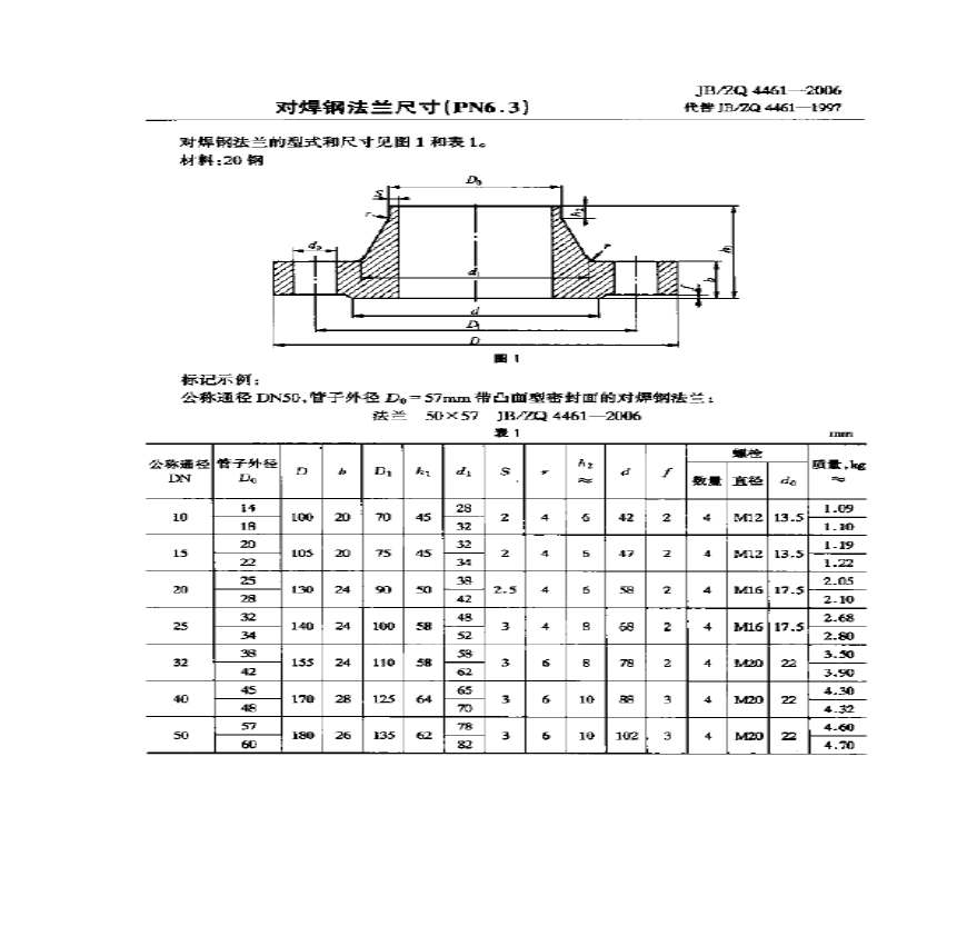 JBZQ 4461-2006 对焊钢法兰尺寸(PN6.3).pdf 免费下载