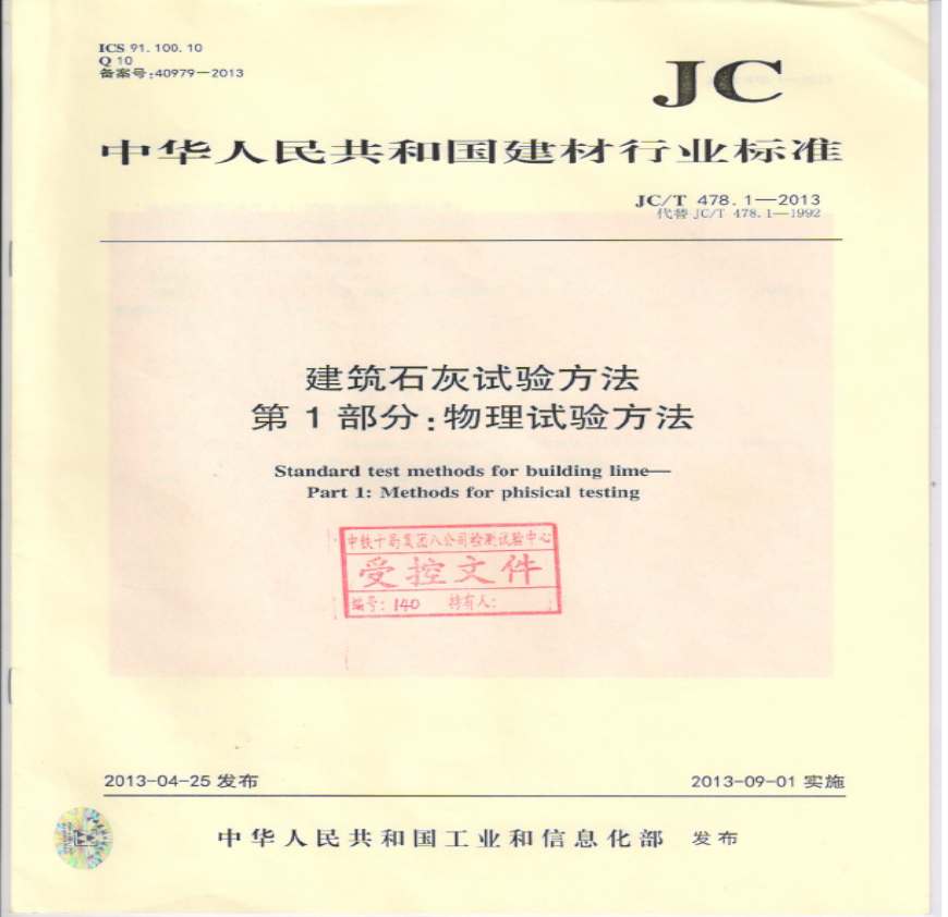 > JC T478.1-2013建筑石灰试验方法第1部分:物理试验方法