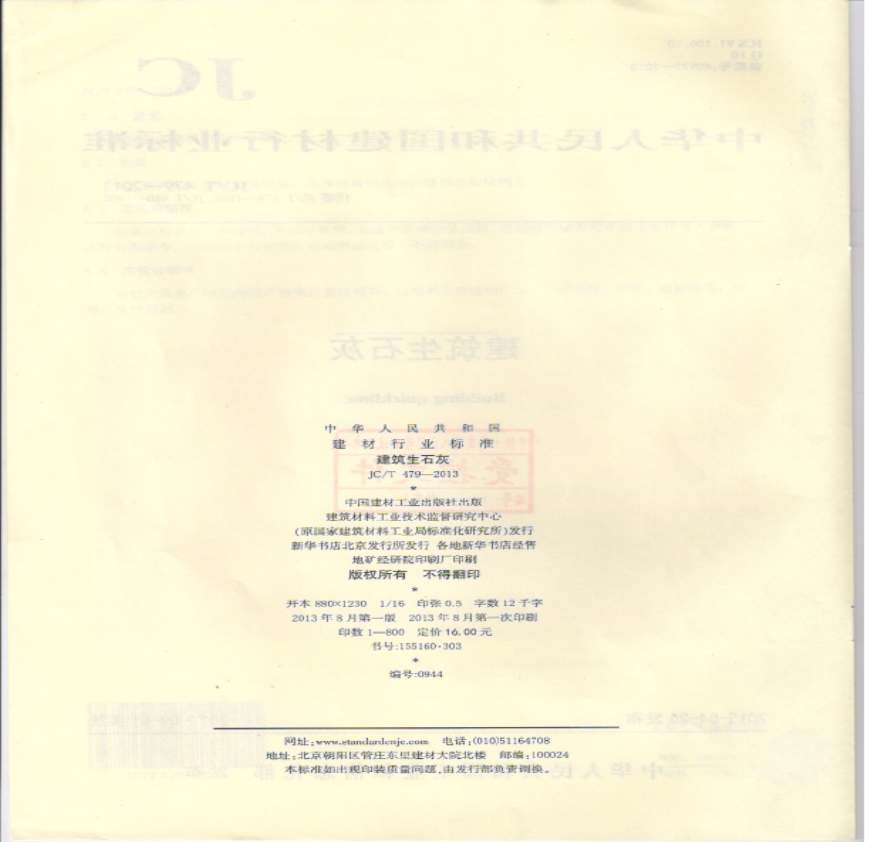 > JC-T479-2013 建筑生石灰