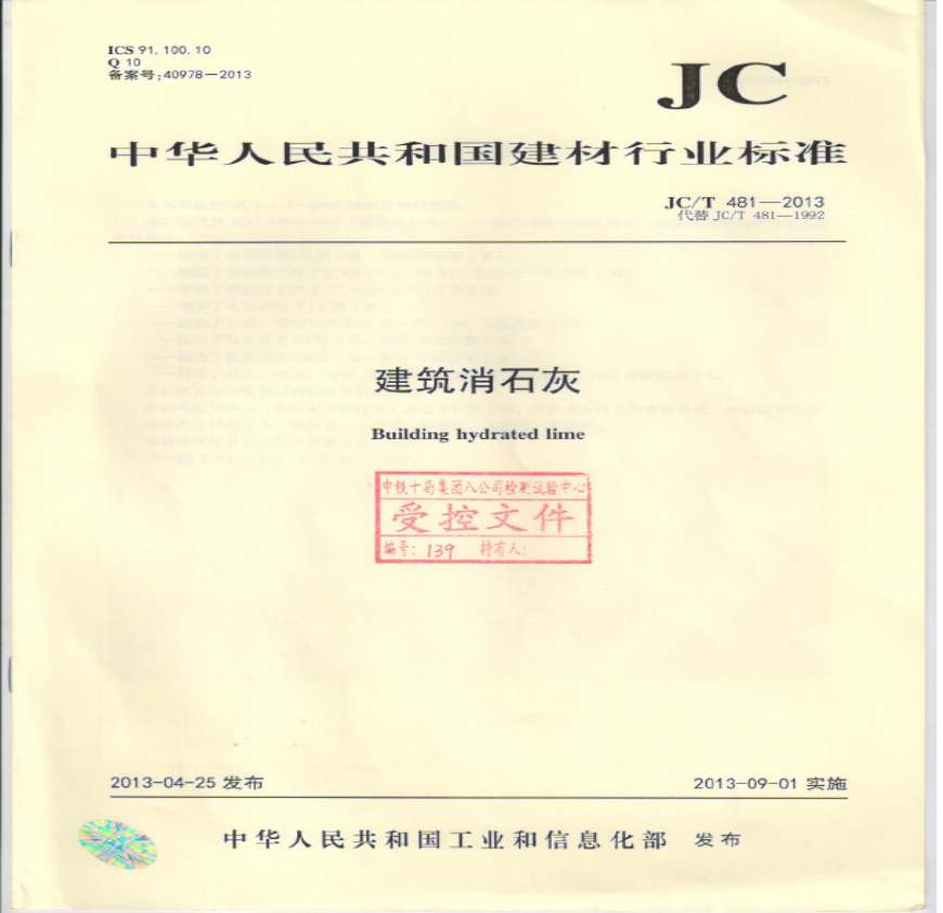 JC T 481-2013 建筑消石灰资料下载,喜欢的朋友可以下载收藏!