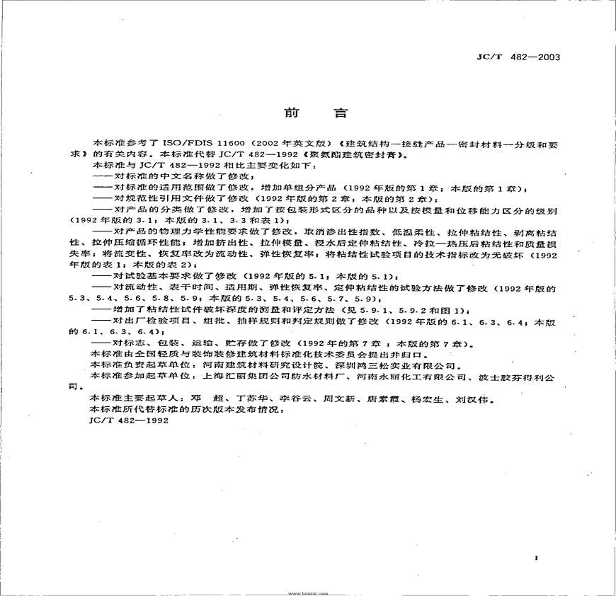 JC/T 482-2003 聚氨酯建筑密封胶.pdf 免费下载