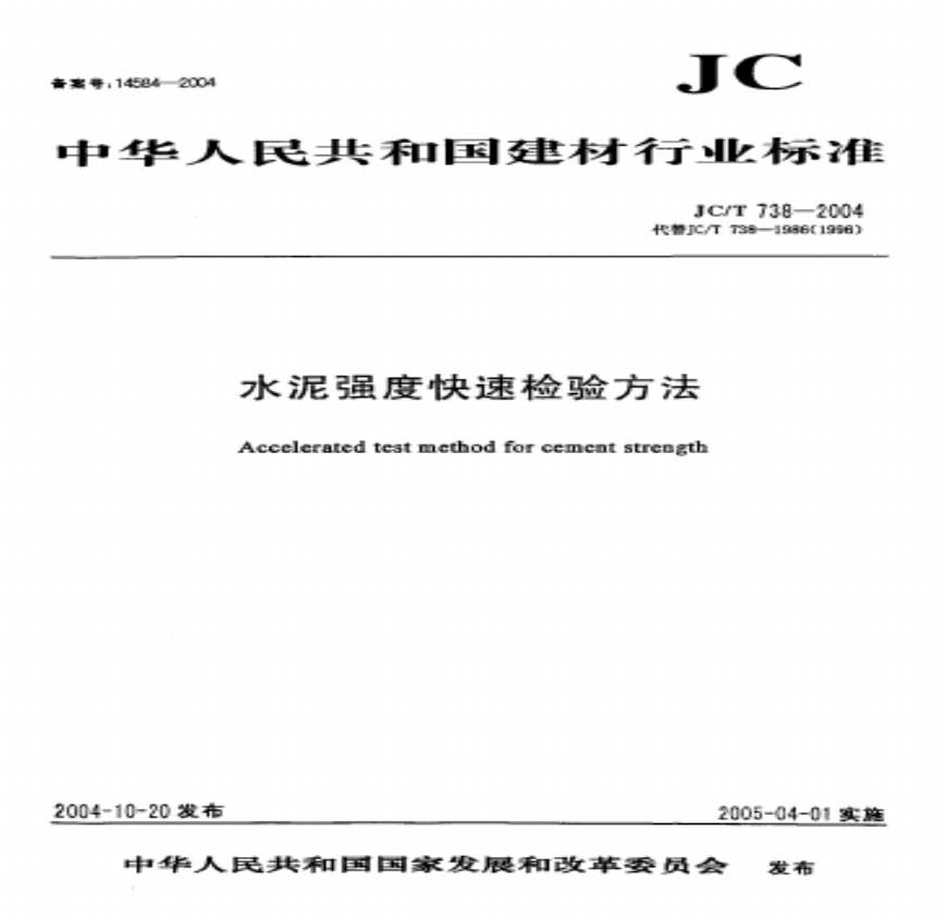 JC T 738-2004 水泥强度快速检验方法资料下载,喜欢的朋友可以下载收藏!