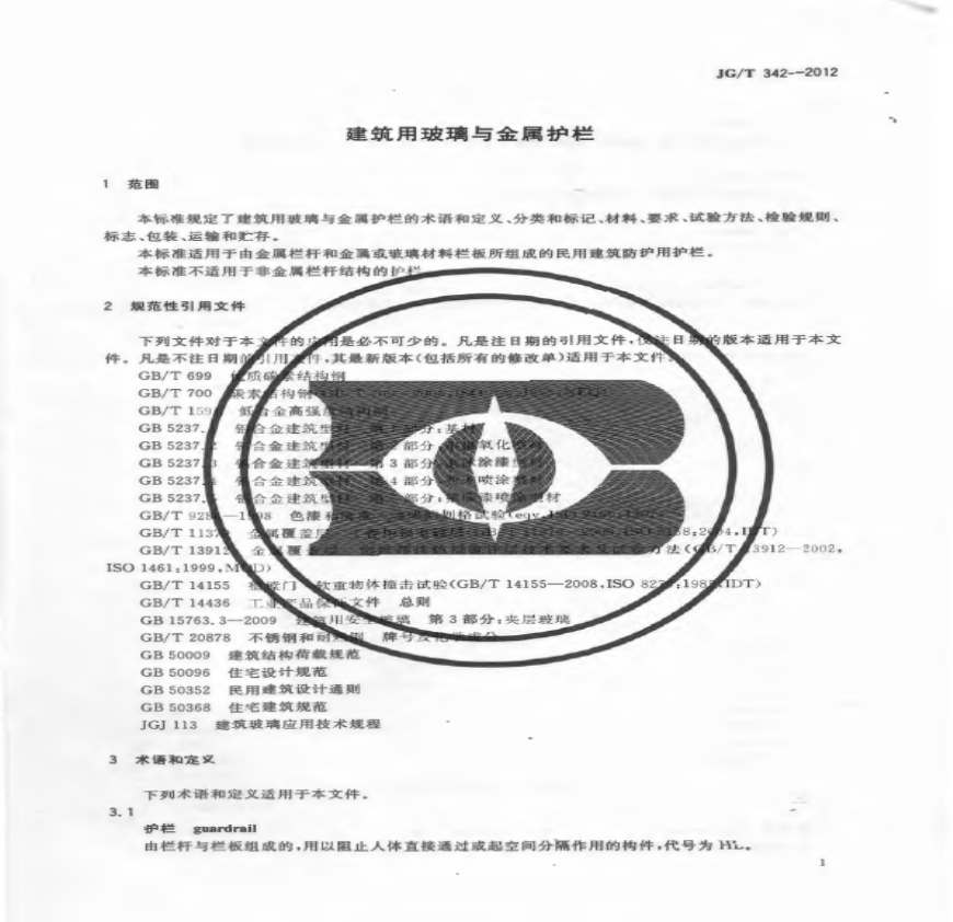 JG 342-2012-T 建筑用玻璃与金属护栏资料下载,喜欢的朋友可以下载收藏!