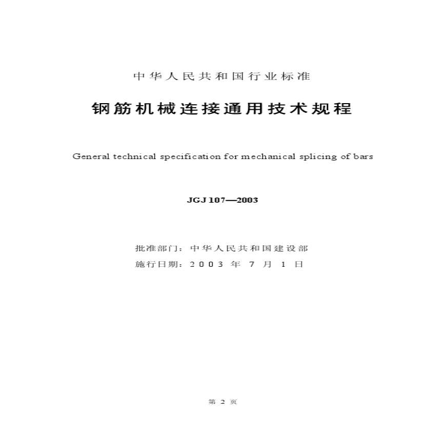 JGJ 107-2003钢筋机械连接通用技术规程.pdf 免费下载
